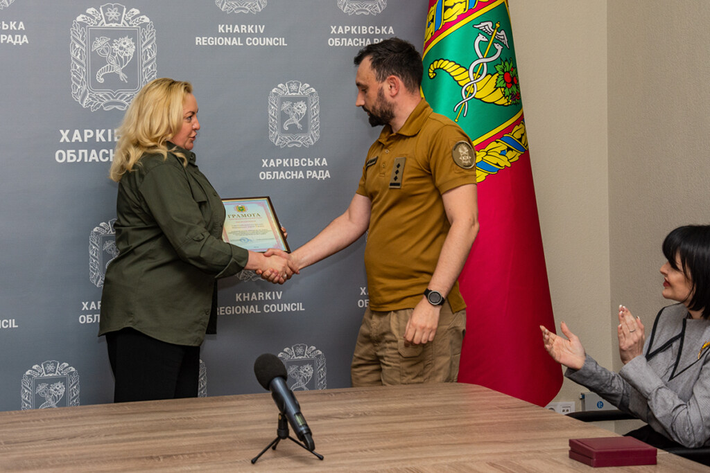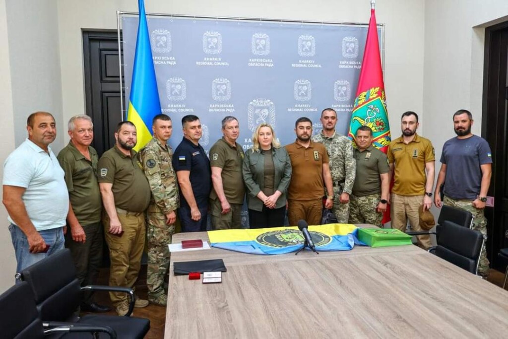 Нагороду командиру нашої бригади полковнику Дмитру Клодчику під час урочистого прийому військових вручила Голова Харківської обласної ради Тетяна Єгорова-Луценко. Нагорода вручена за героїзм та мужність, виявлені Слобожанськими гвардійцями під час захисту Харківщини та державного суверенітету від російських загарбників.