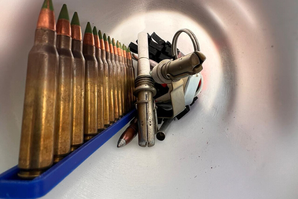 Так, ввечері 18.10.25 на одному з блок-постів під час спроби проїхати у Харків була зупинена автівка Kia Optima EX, під керуванням чоловіка 1979 р.н. В салоні транспортного засобу кінолог зі службовим собакою Отті виявили 8 гранат, 8 запалів до них та 870 набоїв калібру 5,45.