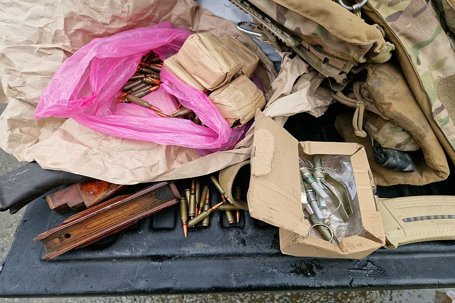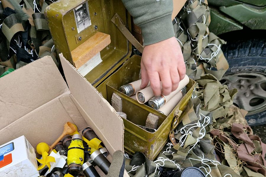А о 15:20 на блок-пості на півночі Харкова під час фільтраційних заходів, мобільною кінологічною групою було зупинено автомобіль ВАЗ 2106 під керуванням чоловіка 2000 р.н. Під час огляду транспортного засобу кінологом із службовим собакою Amorek в салоні було виявлено: 412 патронів калібру 5,45, гранати РГД та Ф1, два універсальних запали системи Віцені та А. А. Беднякова.
