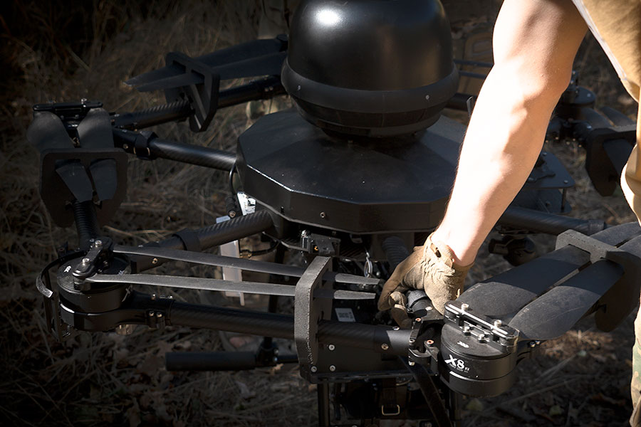 Підрозділ Ахілла активно застосовує різні типи БПЛА: коптери, FPV, «крила», бомбери, а також наземні дрони. Темою дронів гвардієць зацікавився у 2022 році. Все починалося з волонтерського «мавіка».