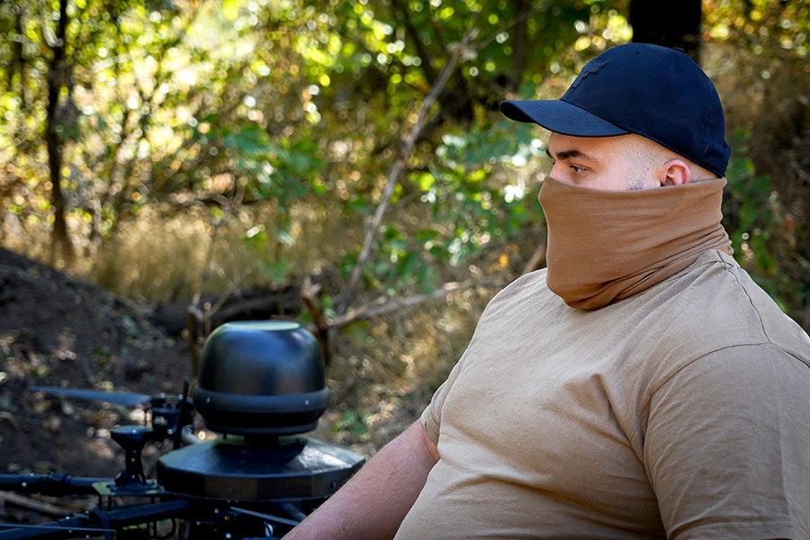 «Ми почали з Mavic mini 2, який нам подарували волонтери. Використовували для розвідки, а потім почали активно коригувати міномет. Тоді мище не мали Starlink,але вже намагалися через модеми з мобільними картками робити стрім», — розповідає Ахілл. Каже, що згадана технологія БПЛА втратила актуальність на фронті, проте цей дрон він береже як пам’ять. — Десь у серпні 2022, ми вже мали виносну антену від пульта і вже починали працювати з укриттів, з бліндажів, бо тоді ще мали не «прошитий»дрон. Тодіпо нас росіяни розряджали просто цілі касети НУРС та різних РСЗВ».