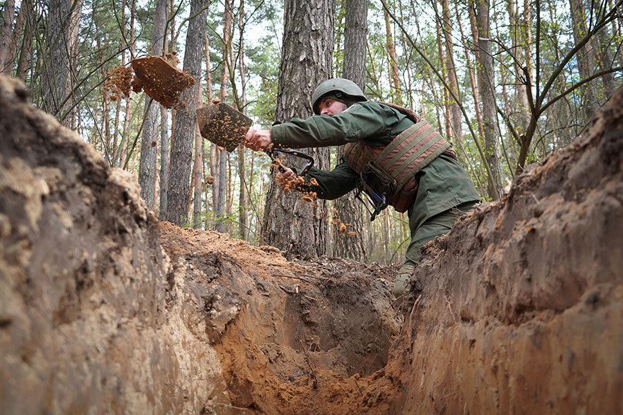 “Копали окопи для стрільби лежачи, з коліна, стоячи, коли вони були готові, почали з’єднувати між собою в одну лінію оборони”, — пояснює рекрут “6”.