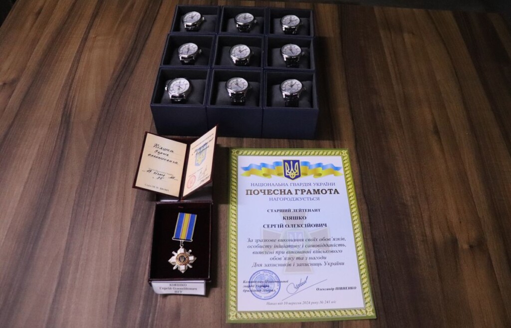 Наказом Командувача Національної гвардії України цінним подарунком – годинником нагороджено: