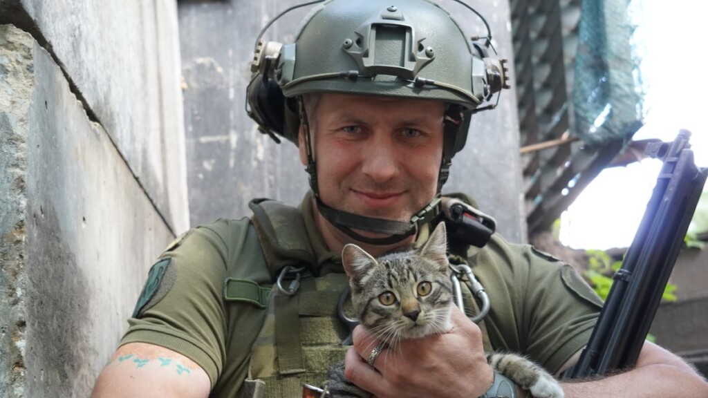 Тут до нас знову повертається батальйонний покращувач настрою — кішка Гільза, видно, що до Лома у неї велика симпатія. Наш Герой вкотре бере її на руки, і ми завершуємо розмову під задоволене муркотіння бойової подруги бійців батальйону та з розумінням, що у великої та сильної людини завжди добре серце.