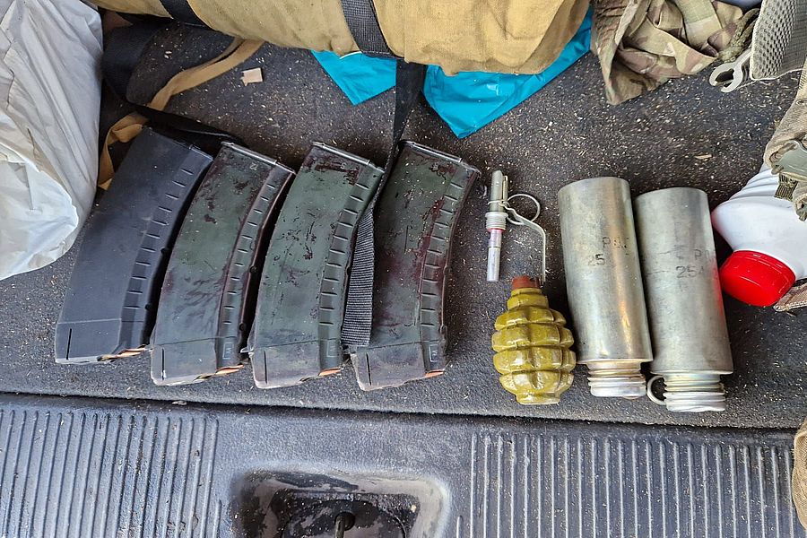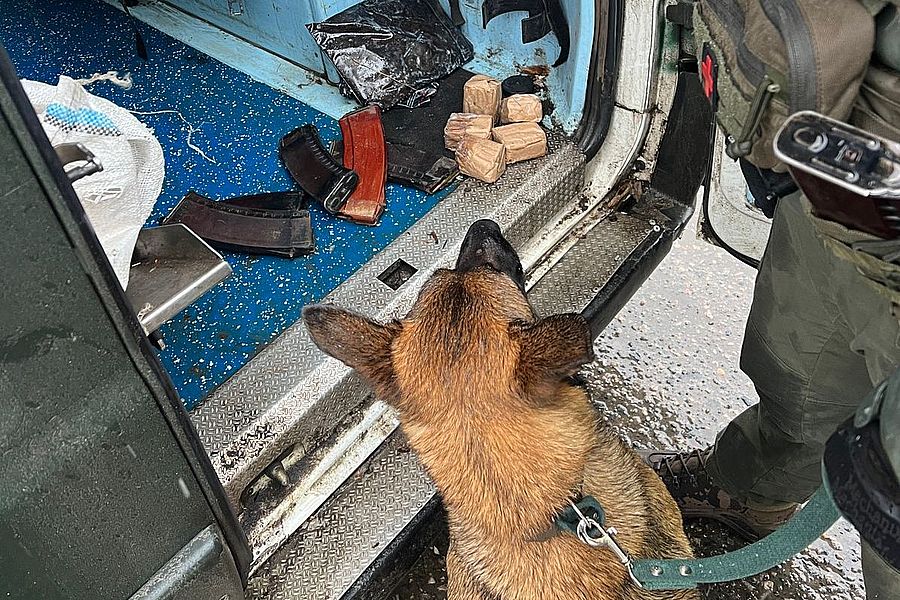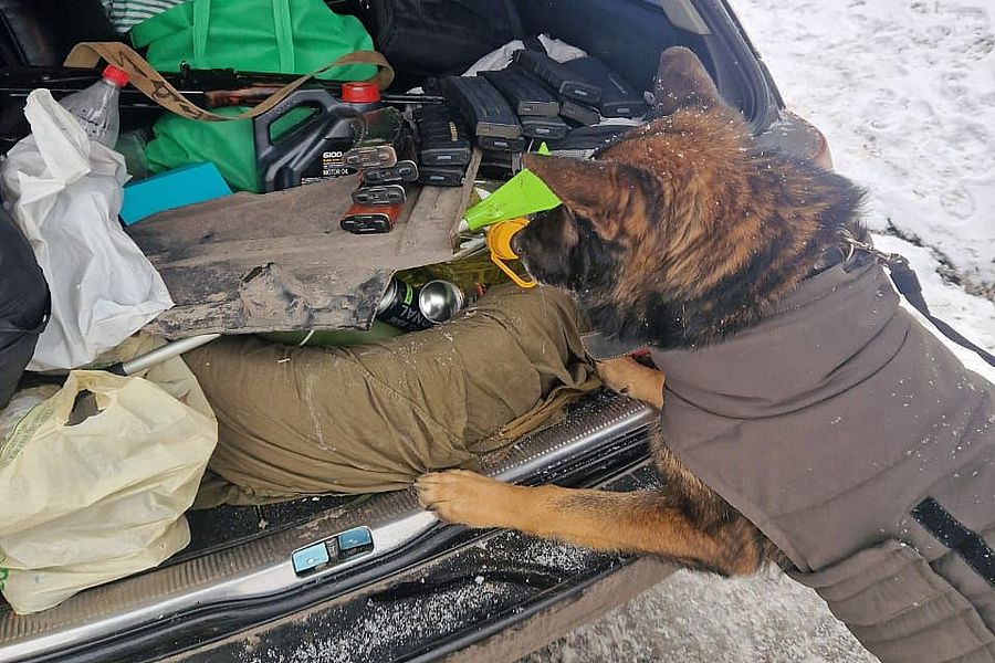 22.01.2024 о 14:20 на в’їзді до м. Харків з боку міста Зміїв під час фільтраційних заходів мобільною кінологічною групою було зупинено транспортний засіб KIA Sorento на іноземних номерних знаках, під керуванням чоловіка 1991 р.н. Під час огляду транспортного засобу кінологом зі службовим собакою Вета в салоні автомобіля було виявлено: три гранати різних видів, запал УЗРГМ2 та 120 набоїв калібру 5,45.