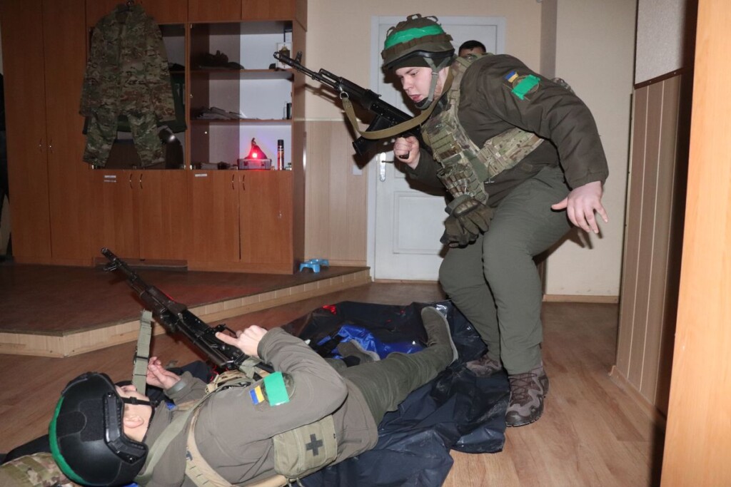 Приміщення без світла, яскраві спалахи у темряві, неочікувані звуки вибухів та пострілів з різних боків, кров навколо. Спостерігачу може здаватись, що він потрапив у якусь сучасну комп’ютерну гру в 3D. Втім, це – перше заняття з тактичної медицини, цикл яких запровадили в одному з батальйонів слобожанських гвардійців.