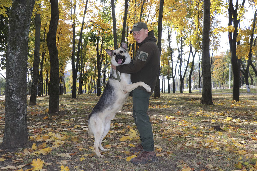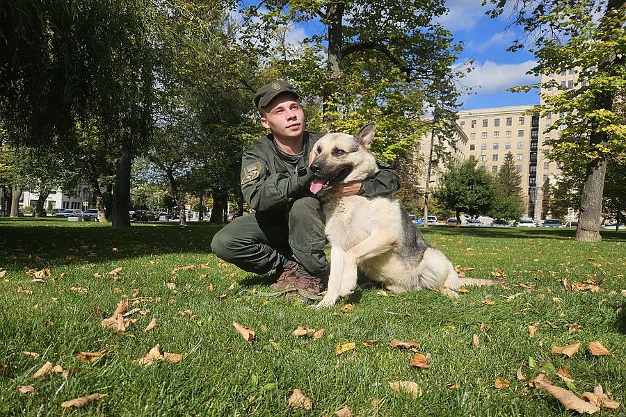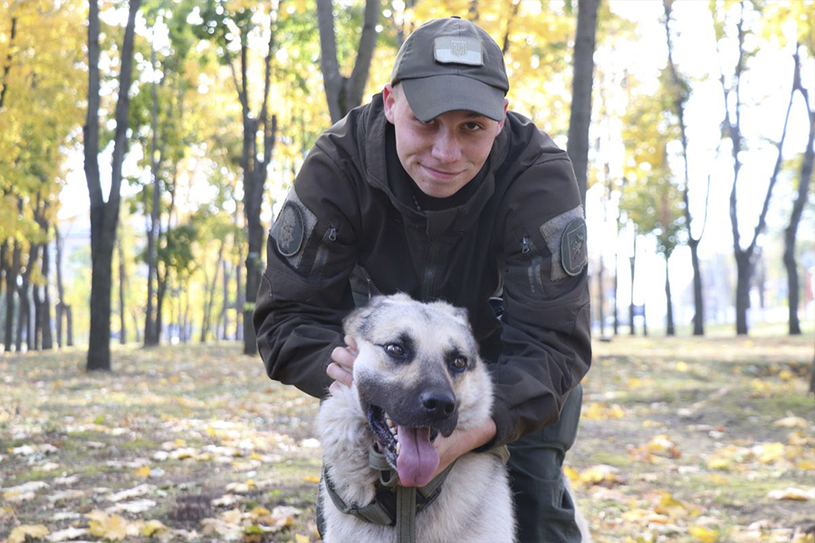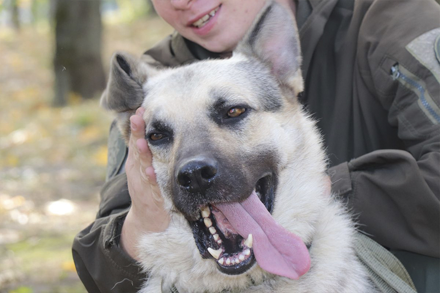 Уперше ми зустрілися приблизно місяць тому. На центральній площі Харкова помітили хлопця у гвардійській формі та нашивками 5 Слобожанської бригади. Поруч із бійцем сидів статний пес яскраво-сірого кольору, пухнастий і величний – середньоєвропейська вівчарка. Безумовно, одразу виникло бажання підійти й познайомитися.