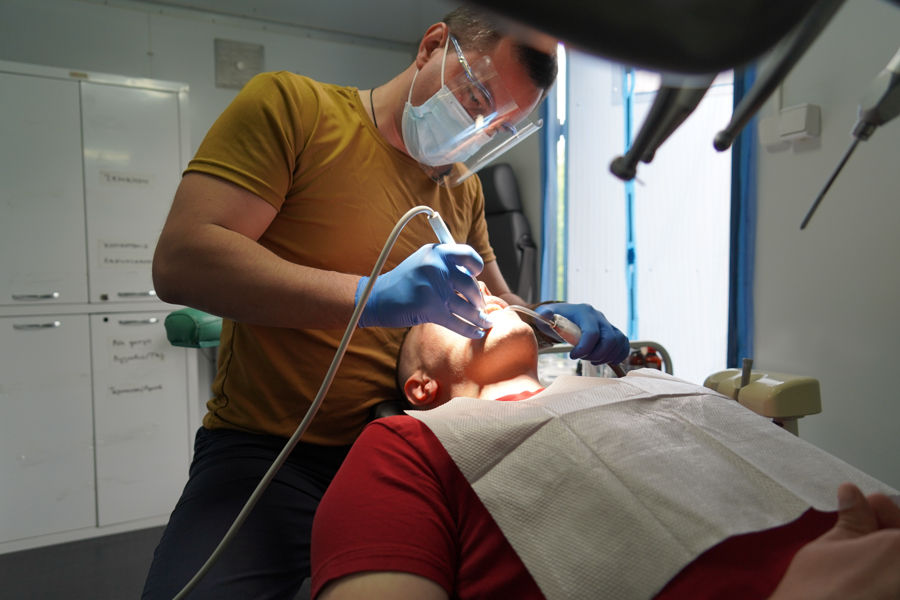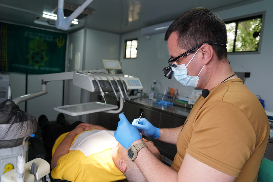 Щоб потрапити на прийом, військовослужбовці звертаються до медиків своїх підрозділів, а ті контактують зі стоматологом. За словами лікаря, пацієнти приходять не лише з гострим болем. Звертаються за послугами з професійної гігієни та реставрування пошкоджених зубів. За два тижні на первинний прийом завітали 60 військовослужбовців.