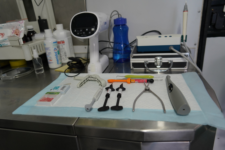 Мобільну клініку обладнали на базі колишньої автоперев’язувальної. Головна ідея в тому, щоб гвардійці не чекали ротації, аби подбати про зуби, а між виконанням бойових завдань могли отримати якісні стоматологічні послуги. У кабінеті є все необхідне обладнання.