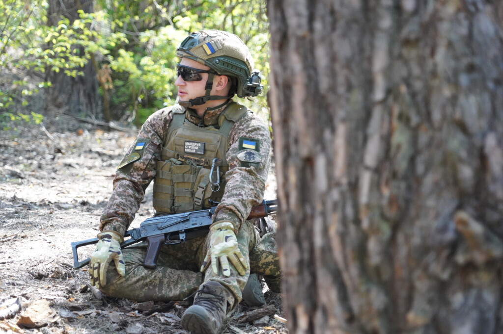 Розбиті на декілька груп, вчорашні курсанти рухаються лісом у повному екіпіруванні. Інструктори ганяють молодих офіцерів до «сьомого поту». Відпрацьовують скритне переміщення, займають кругову оборону, досліджують місцевість, практикують тактичну медицину тощо.