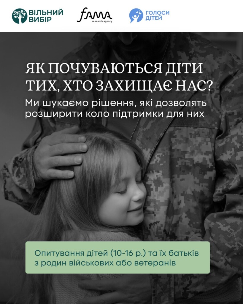 Запрошуємо вас та ваших дітей долучитися до важливого опитування серед сімей ветеранів та ветеранок, а також військовослужбовців і військовослужбовиць.
