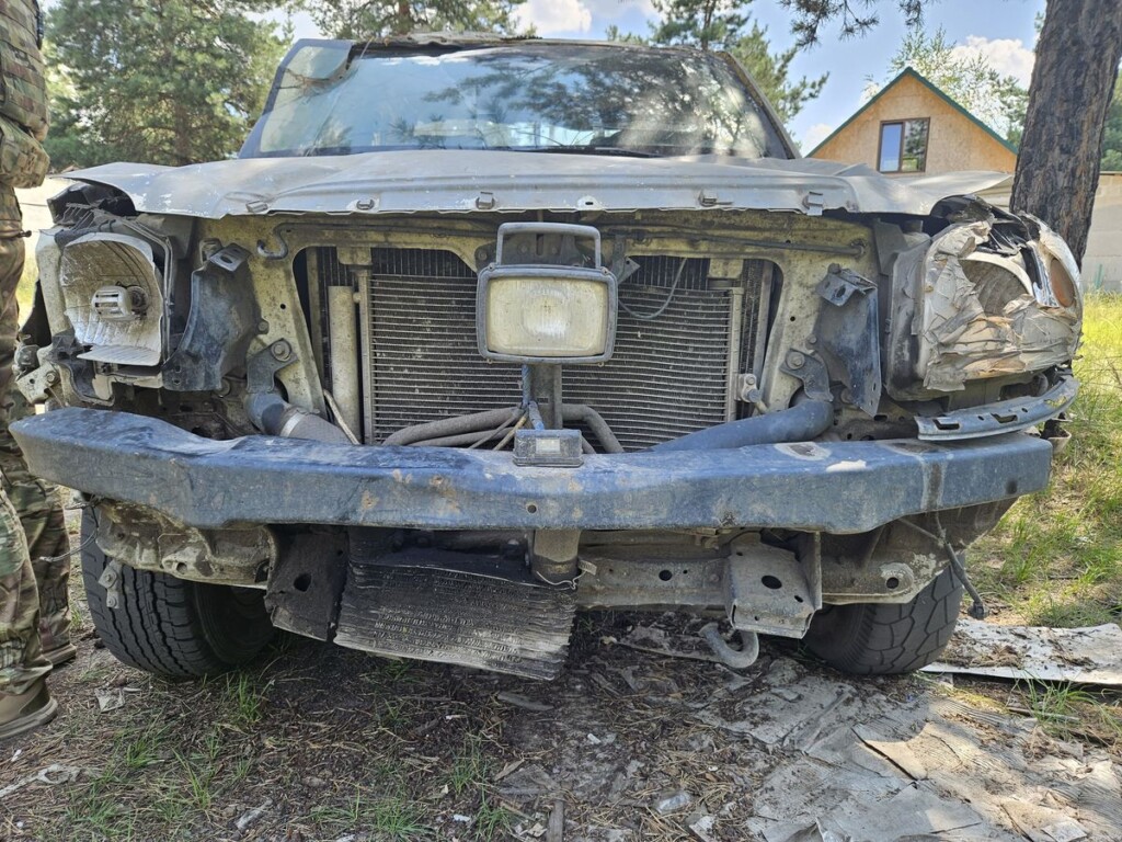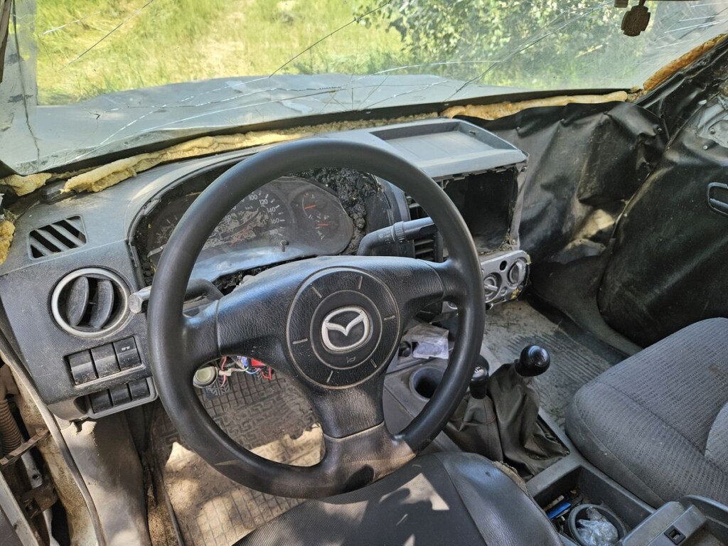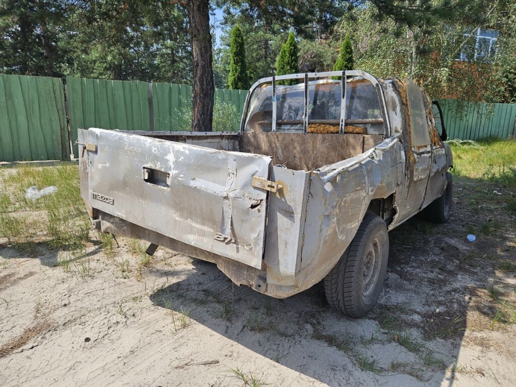 У «Франкі», як його ласкаво називають побратими-гвардійці, типова доля волонтерської автівки. Цей пікап почав служити у 5-й Слобожанській бригаді НГУ у травні 2022-го. Тоді батальйон, у який волонтери пригнали цю майже нову «Мазду 2500», захищав Балаклію. На заводі, на теріторії якого був розташований штаб батальйону, особливих укриттів для машин не було, тому «Франкенштейн» одразу відчув на собі наслідки обстрілів «Градами», ствольною артилерією, танками. А кульові отвори, отримані під час виїздів на позиції, гвардійці кинули рахувати ще у Балаклії – їх безліч, а зовні «Франкі» нагадує друшляк на колесах. Автівка пережила навіть дистанційне мінування, коли касета з мінами «засіяла» площу навколо «Франкі», а сапери підірвали їх, бо розмінувати не було можливості.