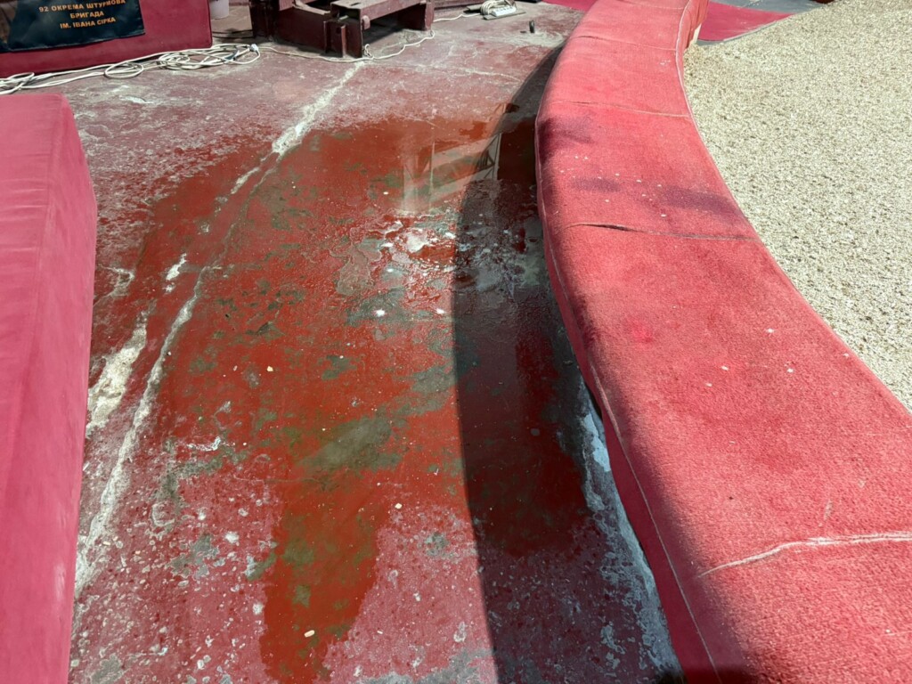Тече прямо на манеж і місця глядачів.