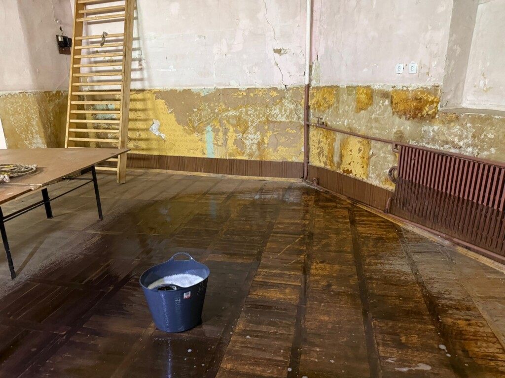 Найбільше дісталося просторій залі зі старовинним паркетом. Заступниця Генерального директора Державної циркової компанії України Любов Тимохіна мріє обладнати її під репетиційний клас для діточок, які починають займатися цирковим містецтвом. Тази та відра під час дощу тільки встигай виносити. Однак це не допомагає.