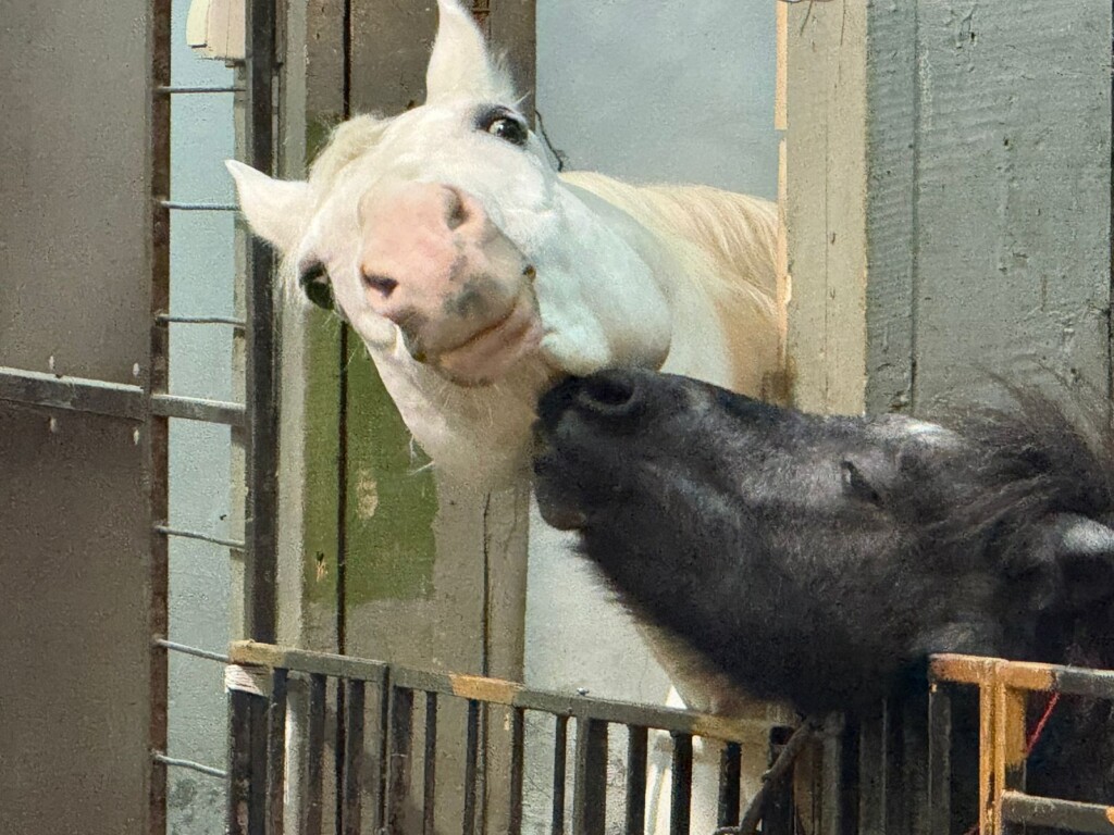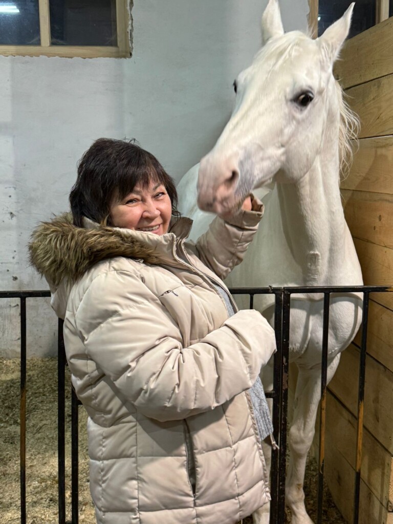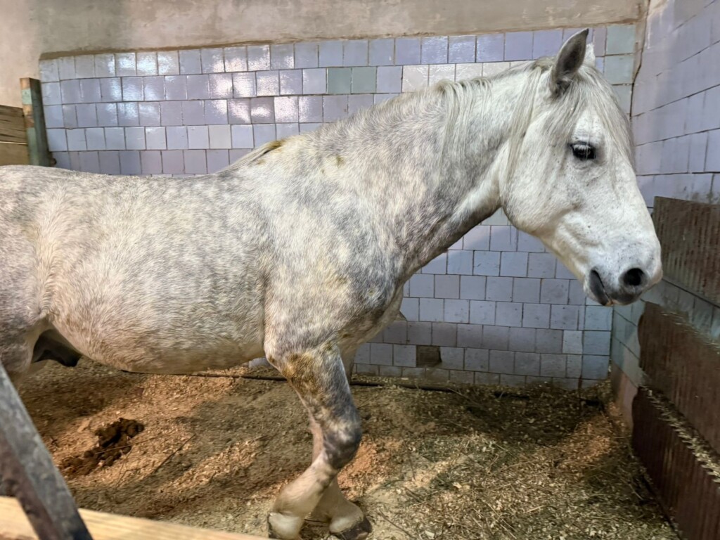 Ще один красень — білий у сірих яблуках трирічка був вивезений з Покровського напрямку. Був теж безіменним, тепер Букет і робить перші кроки на арені.