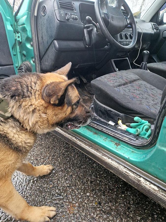 Так, 05.11.2023. о 16:00 на БП «Чугуїв» на вʼїзді в м. Харків під час фільтраційних заходів мобільною кінологічною групою нашої військової частини був зупинений автомобіль Mercedes Sprinter білого кольору. Під час огляду транспортного засобу офіцер-кінолог разом зі службовим собакою Ірбіс виявили в транспортному засобі у вантажному відділенні два порохові заряди, корпуси мін МОН-50 та МОН-90.