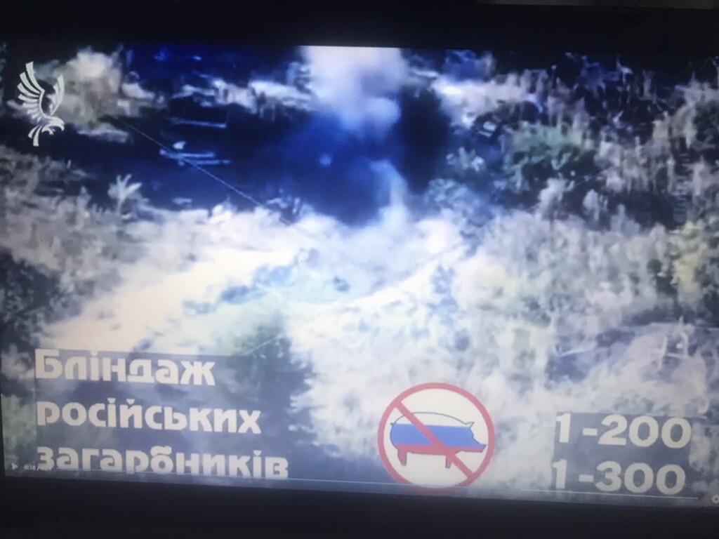 Розрахунком Гусара за допомогою двох ударних FPV-дронів було нанесено вогневе ураження по бліндажу. За даними подальшого відеоспостереження один загарбник був знищений, інший отримав важкі поранення.