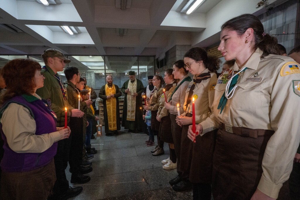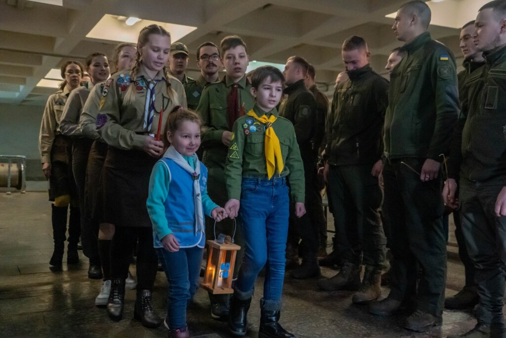 Сьогодні на одній зі станцій Харківського метрополітену зібрались понад 50 гвардійців, військові капелани 5-ї Слобожанської бригади, військової частини 3017, Східного теруправління НГУ, пластуни Харківщини та чисельні представники ЗМІ. Місце зустрічі було обрано не випадково. Через те, що Харків перебуває під постійними ракетними обстрілами російських окупантів, треба було забезпечити повну безпеку дітям-пластунам.