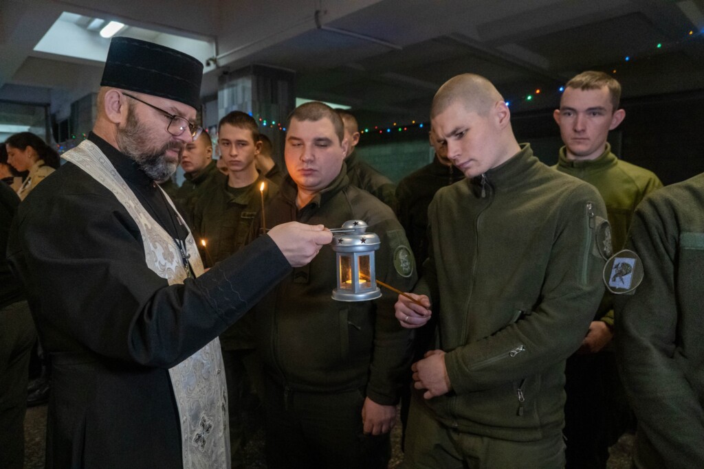 Вифлеємський вогонь миру під різдвяні пісні був урочисто переданий військовим капеланам, а вже від них – кожному гвардійцю.