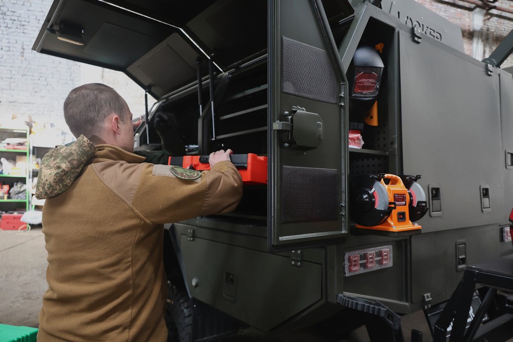 «Якщо ми раніше їздили до машини, знімали колеса, везли до нас у ППД, коли все ремонтували, то зараз ми можемо виїхати прямо туди й зробити це на місці. Можна прямо на місці зробити ремонт автомобільної шини. Також можна виконати зварювальні роботи», — пояснює Слобожанський гвардієць Станіслав на позивний «Юріч».