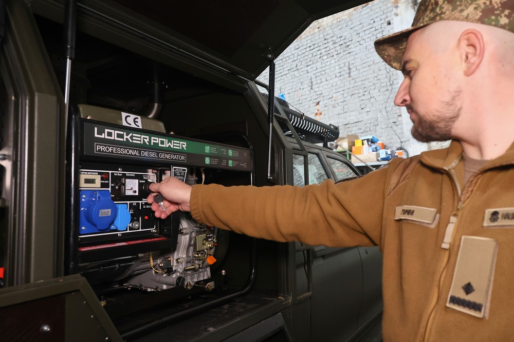 Особливо корисним, кажуть нацгвардійці, буде шиномонтажний станок. На ньому відновити пошкоджене колесо можна за 15 хвилин, а автономність СТО на колесах надає генератор.