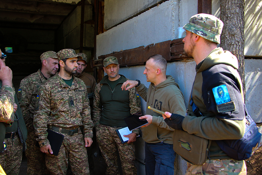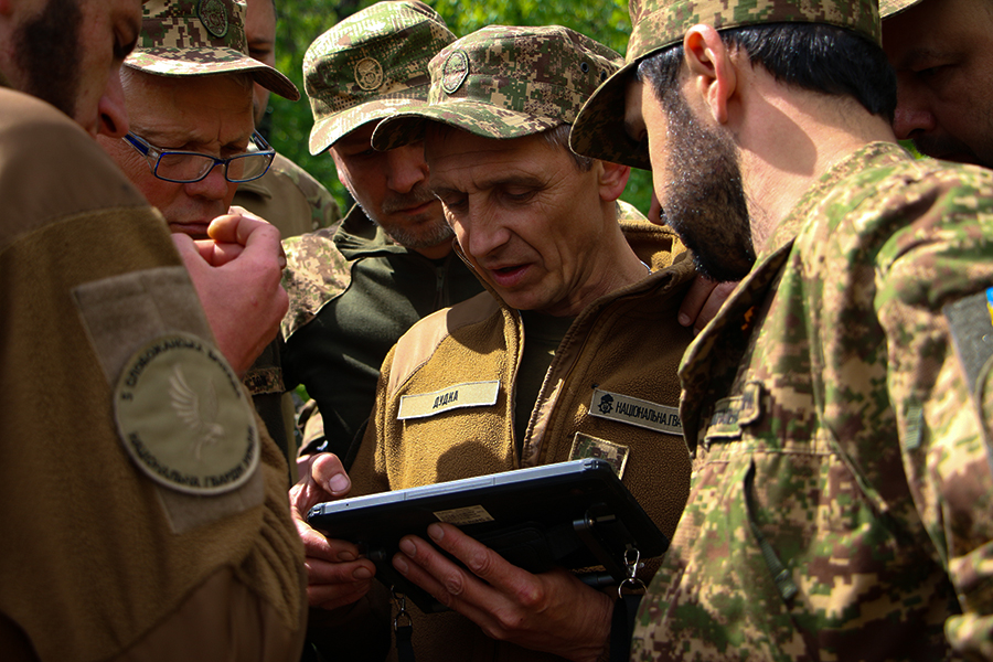 На заняття із використання програмного забезпечення систем управління тактичної ланки до слобожанських гвардійців військовослужбовці із 3 ОТБр з позивними Шакал та Ємеля. Вони розповіли, як обходити обмеження, що диктують тактико-технічні характеристики озброєння танків.