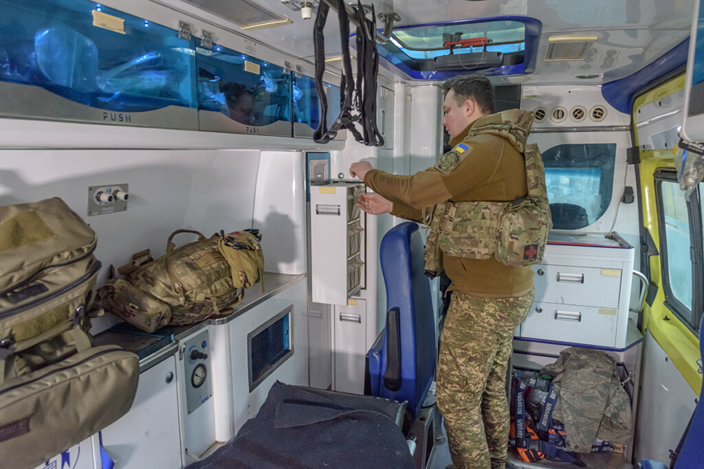 Перша ротація Дмитра на Куп’янському напрямку тривала дев’ять місяців. Це довго, зізнається медик, але він відчував себе на своєму місці і пишається тим, що кожен боєць, якого він вивіз з нуля, — живий. Розповідає, що для надання медичної допомоги — в гвардійському евакомобілі завдяки постійній і потужній підтримці волонтерів бригади є все необхідне. Екскурсію для журналістів по оснащенню швидкої Дмитро починає з власного наплічника бойового медика.