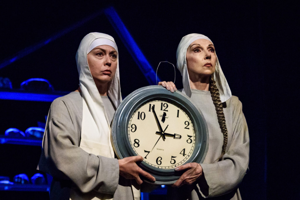 Автор навмисно використовує характерний літературний прийом необхідний для передачі важливих експозиційних обсягів при цьому розкриваючи широкий контекст минулого часу. Для цього МакДонах впроваджує в сюжет двох жінок, здатних вчасно отримувати та ділитися інформацією, але не спроможних впливати на перебіг подій — Кейт та Ейллін. У спектаклі Степана Пасічника їхня функція виразно підкреслена сценічними атрибутами: алегоричними символами часу та простору — годинником та поштовою скринькою. На Кейт та Ейллін покладено завдання щодо підтримки жанрової визначеності вистави. Картини за їх участю це наскрізна лінія розробленого режисером причинно-наслідкового зв’язку — від початку драматичної дії до її логічного завершення. Актриси, які грають Кейт і Ейллін, визначають загальну інтонацію сценічної дії, орієнтованої на глибоко психологічну драму.