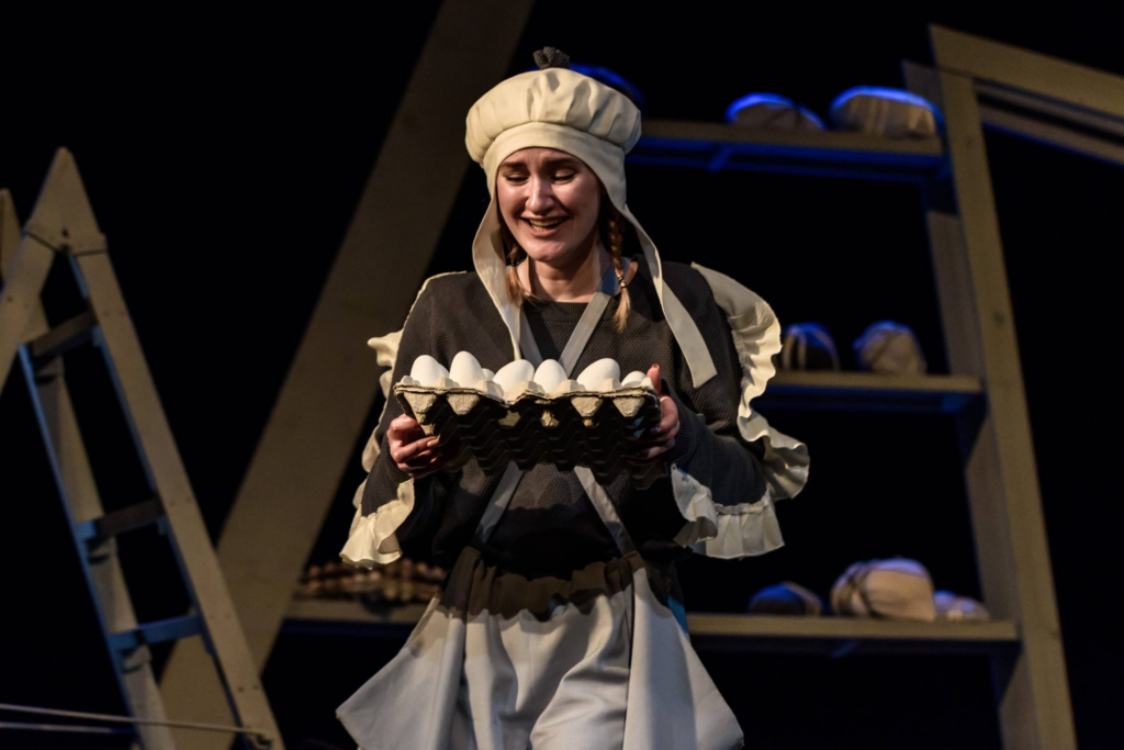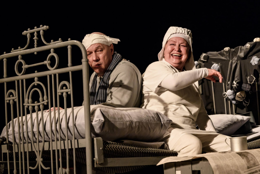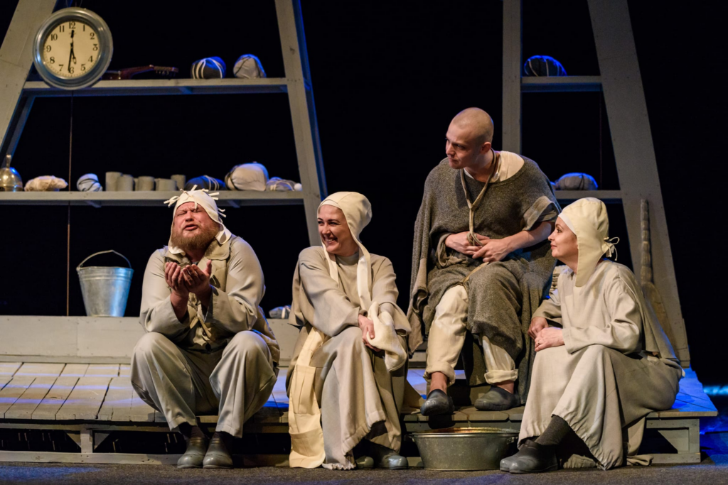 Спробою перетворити драму на трагікомедію (так зазначено в афіші), послужили дві інтермедії, але, на жаль, а може на радість, вони не змогли вплинути на стриманий, навіть аскетичний стиль спектаклю, залишаючись у загальному контексті сценічної дії лише фрагментами для розрядки емоційної напруги.